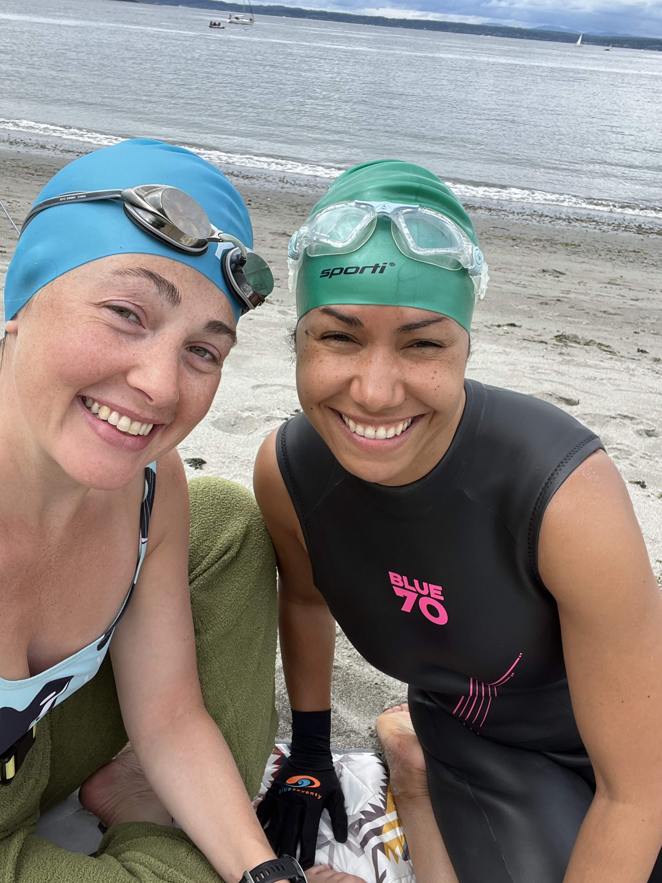 "Christina gave me valuable tips to help me get into open water swimming. She recommended that I buy a wetsuit made for swimming, a neoprene cap, and a swim buoy. She also suggested I wear earplugs to protect my ears in the salt water and that I drink hot tea to warm me up after a cold water swim."